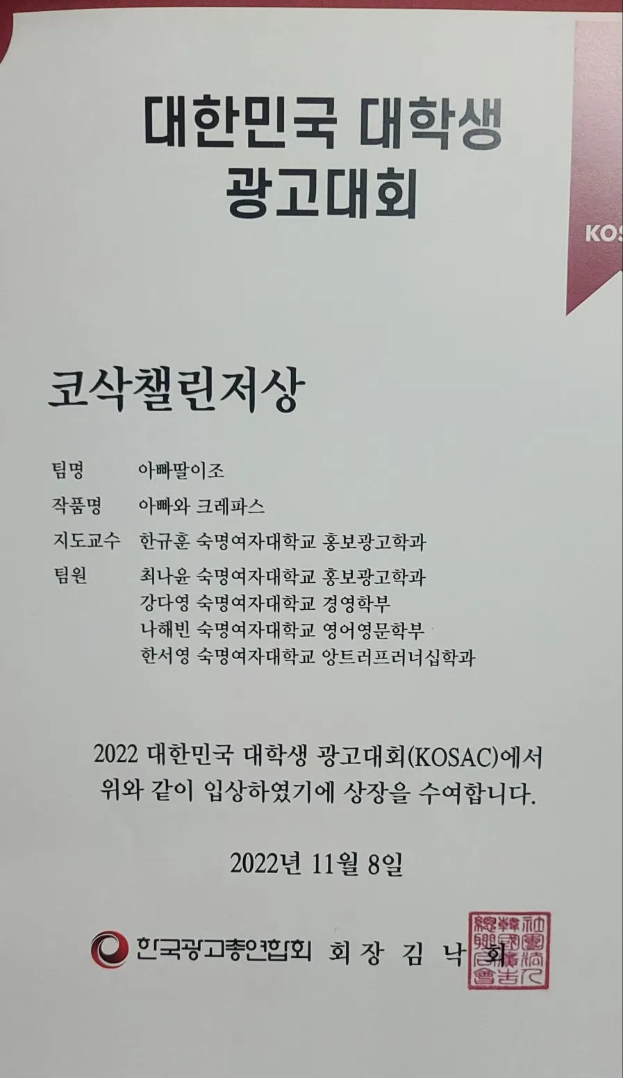 President of SMWU Entrepreneurship Club Changmyung